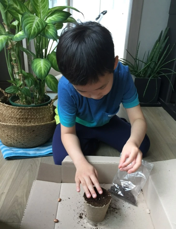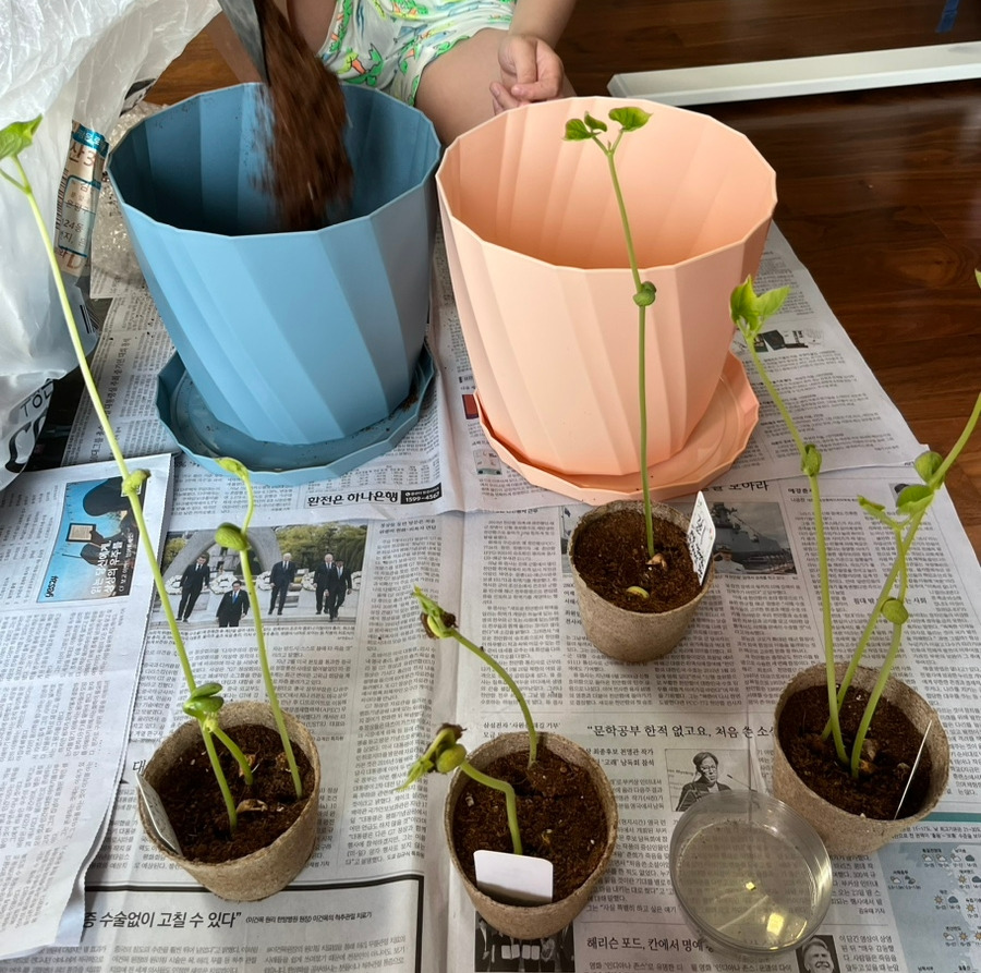 1학년 입학하자마자 코로나가 한창이었던 그때, 학교에서 하지 못했던 강낭콩 키우기를 집에서 열매 꼬투리가 될 때까지 키웠던 적이 있다. 그 후로 3년이 지났다. 분갈이를 하며 문득 흘러간 세월을 체감한다. 아이는 그때보다 자랐다. 혼자서 씨앗을 심고 물을 주었고 분갈이도 곧잘 한다. 손도, 발도, 키도 그리고 마음도 자랐다. 여전히 자라고 있고 앞으로 더 자랄 것이다.