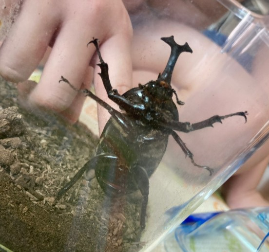 집에서 강낭콩 씨앗을 심어 열매를 맺는 것도 지켜보았지만, 아이는 장수풍뎅이도 키워본 적이 있다. 작년 가을 아이가 3학년이었을 때, 아이는 곤충에 잠시 빠져있었을 때가 있었다. 특히 장수풍뎅이와 사슴벌레, 그 둘의 싸움 장면을 우연히 보게 되었고 이내 매료되었다. 단연 그리스로마 신화의 영웅 헤라클레스의 이름을 딴 '헤라클레스 장수풍뎅이'를 가장 좋아했다. 이름처럼 가장 힘이 세고 커다란 뿔을 가진 멋진 장수풍뎅이. 덕분에 당시 아이는 사슴벌레 풍뎅이류 백과사전에 푹 빠져 모르는 곤충이 없었고, 결국 여주 곤충박물관에서 장수풍뎅이 애벌레 두 마리를 데려왔다. 한 마리는 번데기가 된 채로 굳어버렸고, 다른 한 마리는 다행히 건강하게 날갯짓을 하는 것까지 볼 수 있었다.