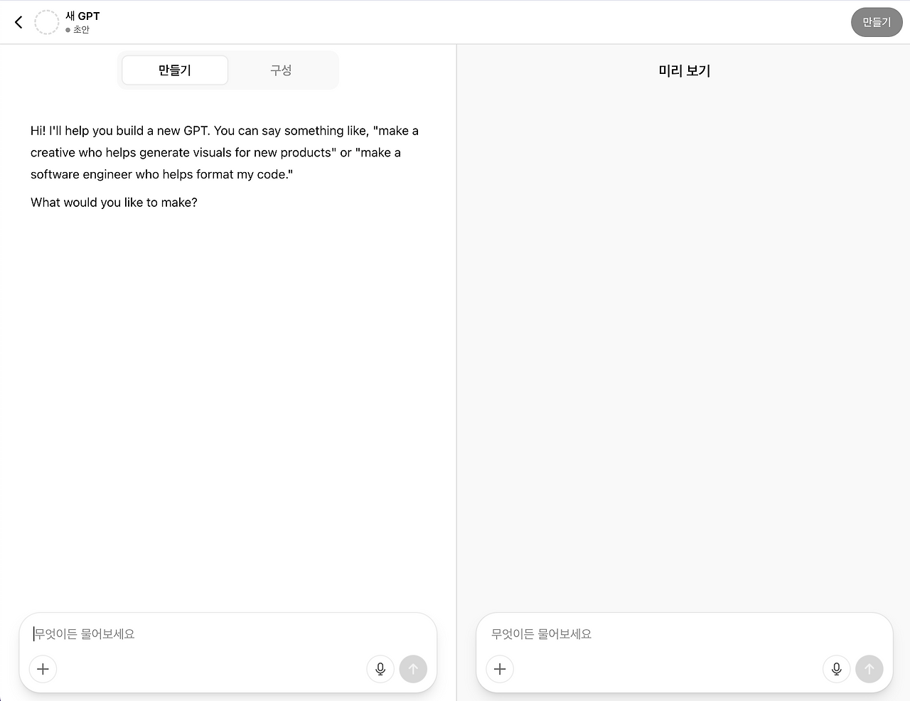 대화를 통해 GPT가 직접 역할도 정하고, 지침도 써주는 과정이 꽤 놀라웠다.