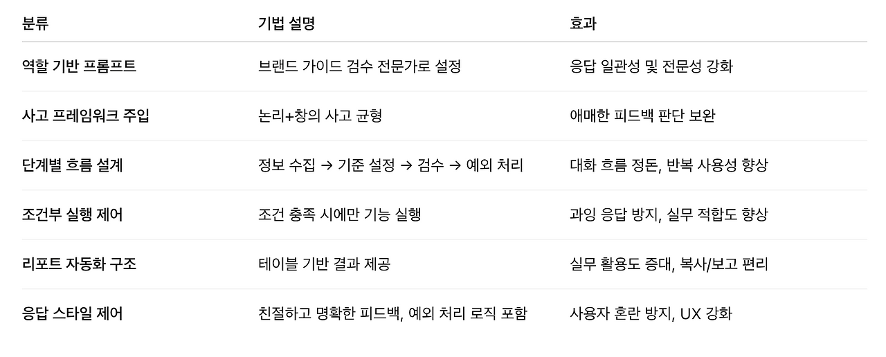 다음은 내가 설계한 GPT에 적용한 핵심 기법들이다.