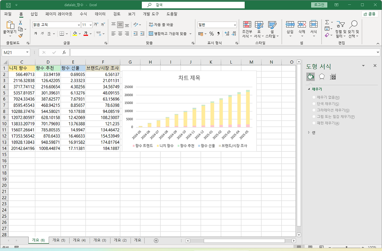 ‘네이버 데이터랩’에서 특정 제품군의 키워드를 추출하고, 지역과 기간 조건에 맞게 데이터를 정리했다.