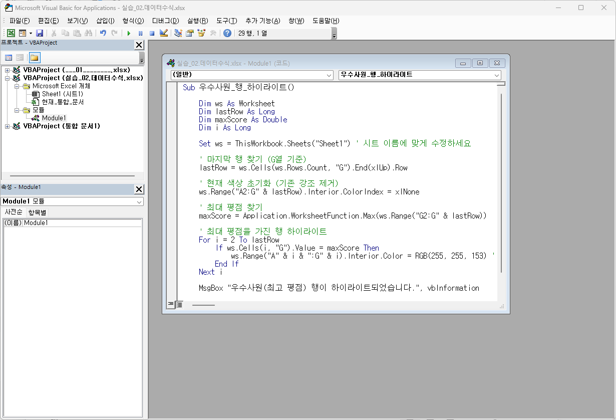 그런 내가 엑셀에 코드를 넣고, 버튼 하나로 데이터를 추출하고 정리하는 실습을 했다.