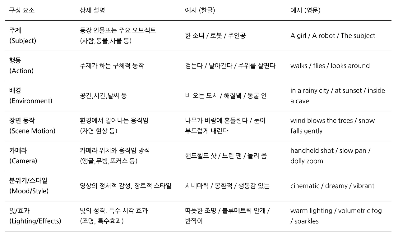 이렇게 직관적이고 설명형 문장으로 써야 원하는 장면이 잘 나옵니다.