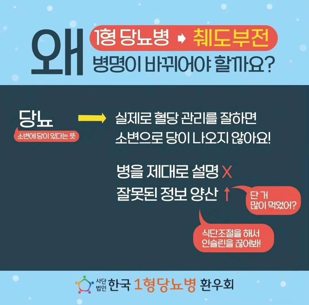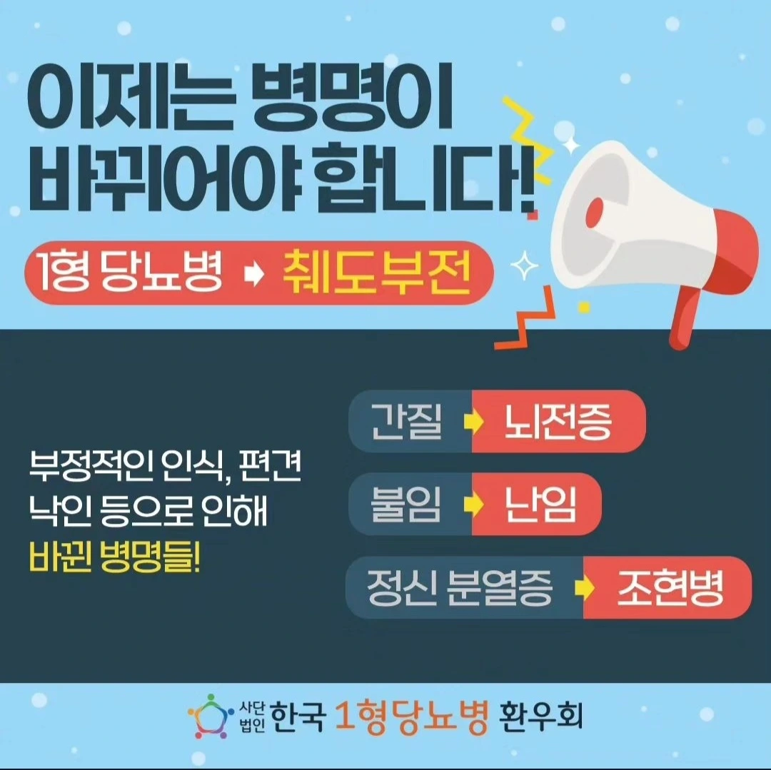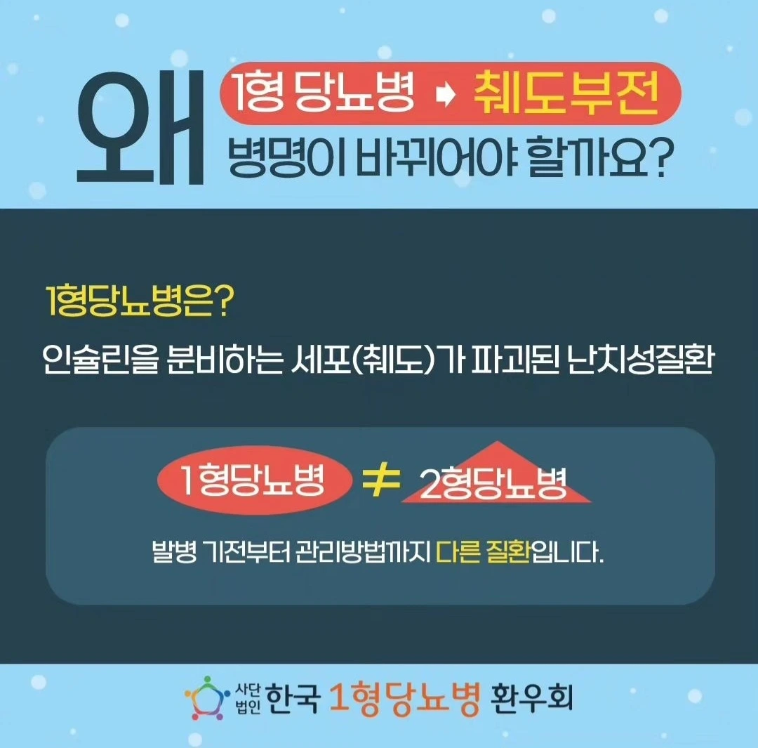 1형당뇨병이 췌도부전으로 병명이 변경되어 그간의 편견과 오해에서 벗어날 수 있게 해주세요!