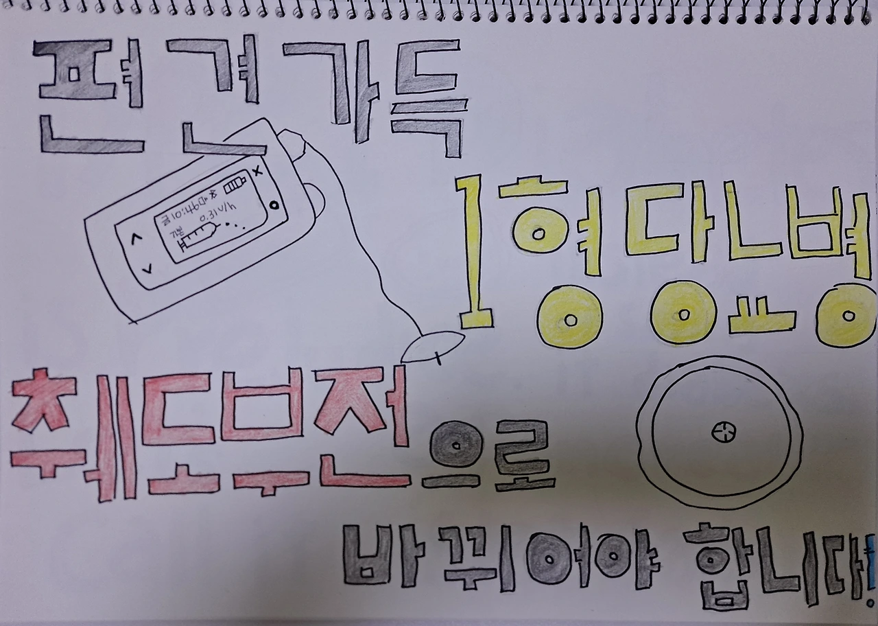 이처럼 1형당뇨병이라는 병명은 사회적 편견이 심하여 병명에서 따라오는 오해들로 인해 질환을 공개하고 당당하게 건강관리를 할 수 없게끔 만들고 있습니다.