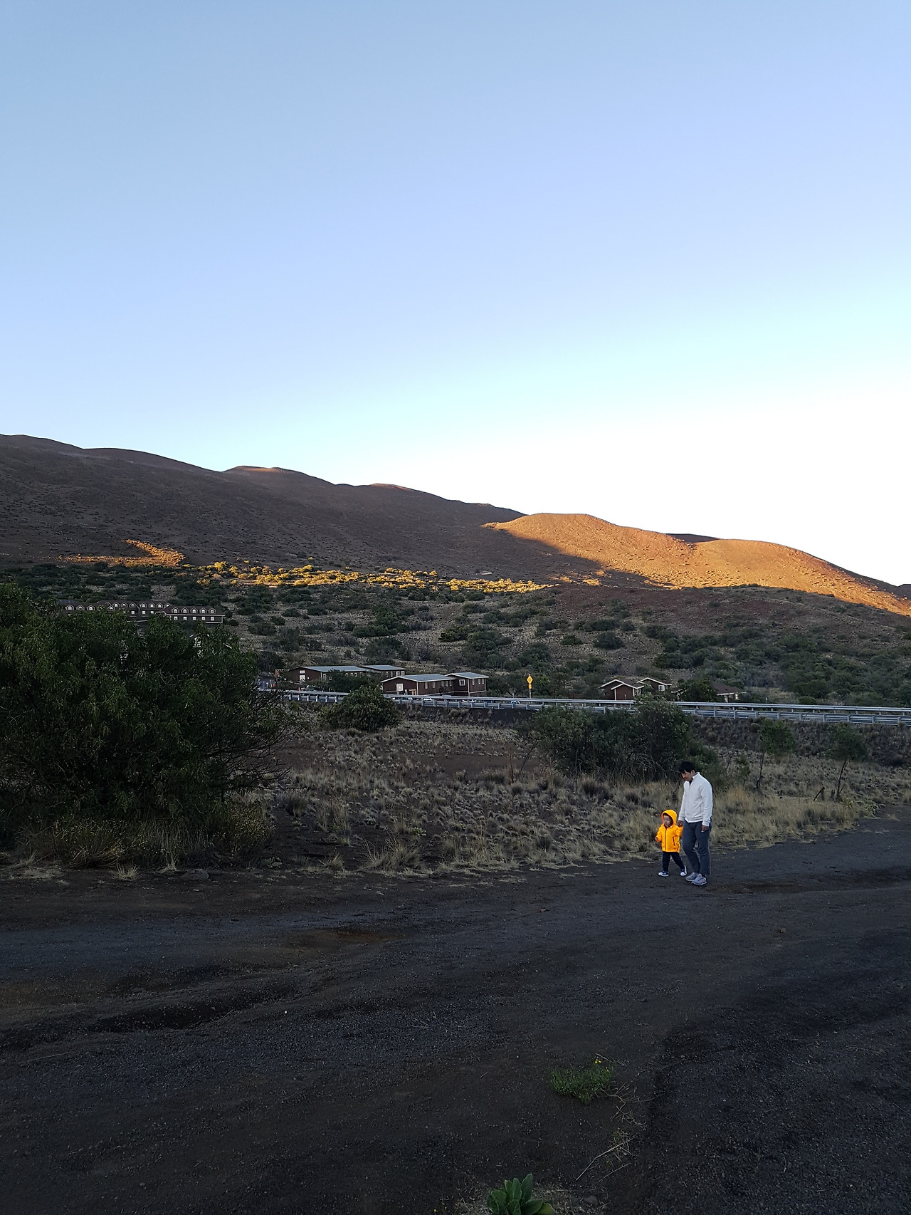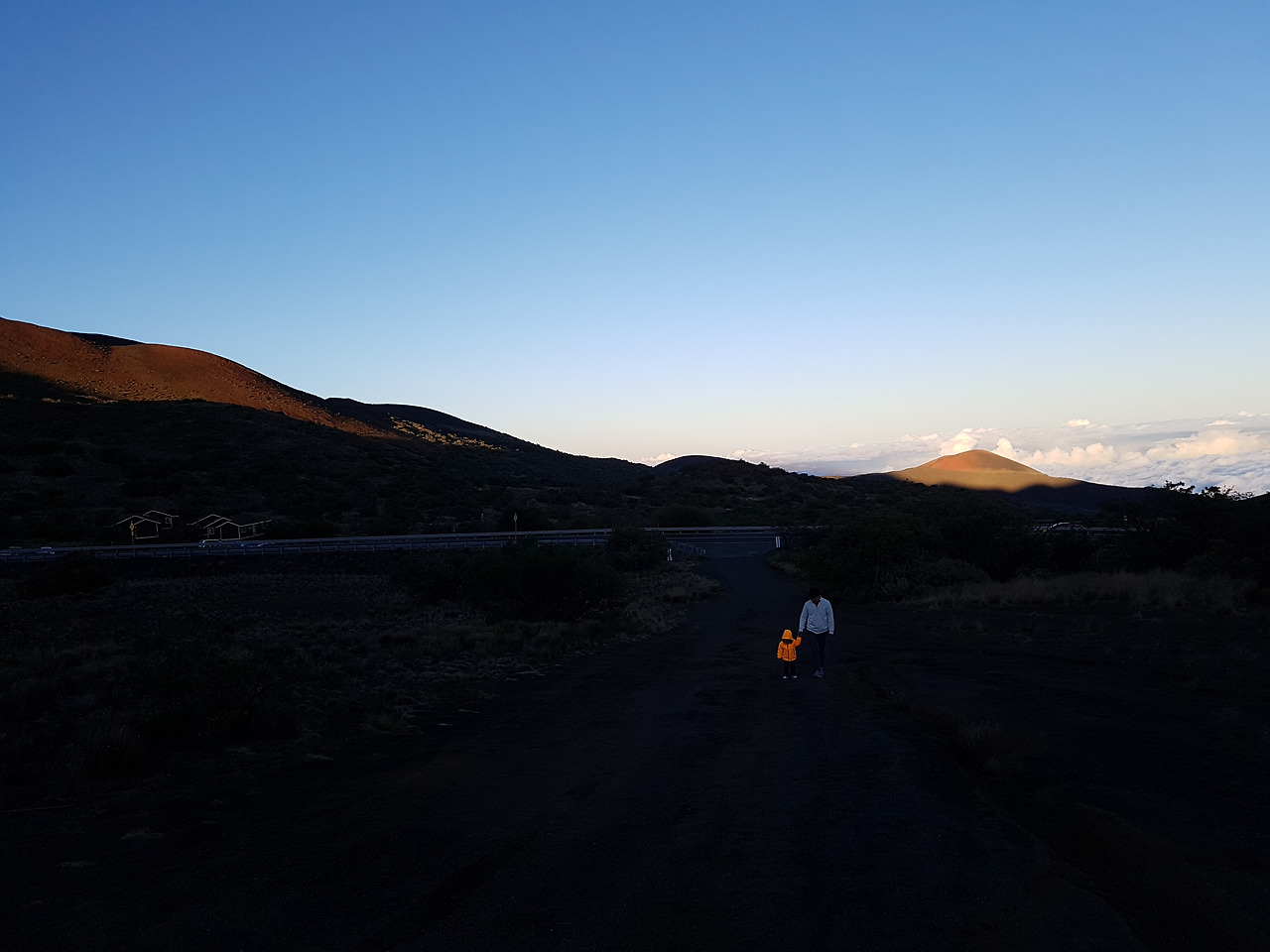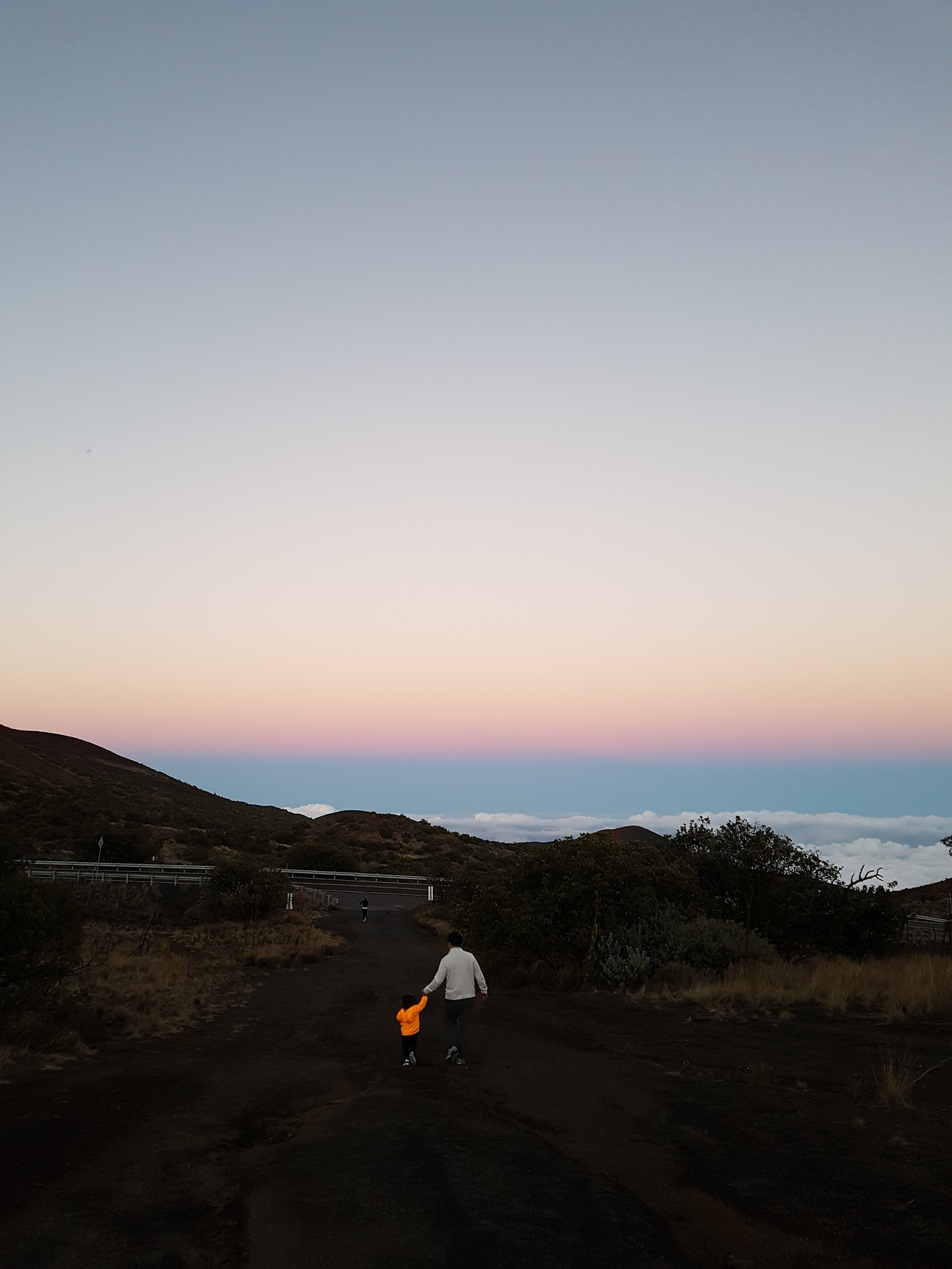 나는 3년 전 마우이 할레아칼라 일출 보러 가기 전날 밤 11시에 우연히 홈페이지에서 할레아칼라 정상이 폐쇄되었다는 글을 발견해서 못 갔던 기억이 났다. 사실 길 자체를 막은 건 아니라 별은 비지터센터 밖에서 봐도 되었지만 애기랑 있으니 밖에서 보면 춥지 않을지, 응급상황엔 누가 봐주는지, 안전요원은 있는 건지 하는 걱정이 줄줄이 소시지처럼 딸려올 수밖에 없었다. 아 이번에도 이러네. 나는 하와이에선 뜨는 해나 지는 해나 볼 인연이 아닌가 보다. 그렇게 꽤 오래 둘이 앉아 멍 때리고 있었는데 (난 사실 다른데 어디갈지 생각하고 있었는데) 갑자기 남편이 그래도 그냥 센터 밖에서라도 보자고 파이팅을 외치며 옷을 주섬주섬 입는 것이 아닌가. 머리에선 도대체 무슨 소리를 하는 거야 싫어 안 갈 거야! 했지만 덩달아 얼떨결에 준비하여 자는 애기를 안고 급히 호텔을 나섰다.
