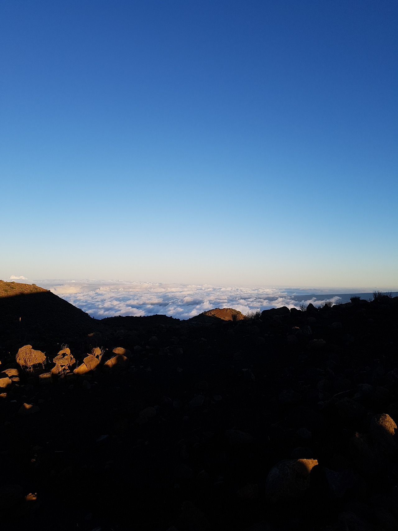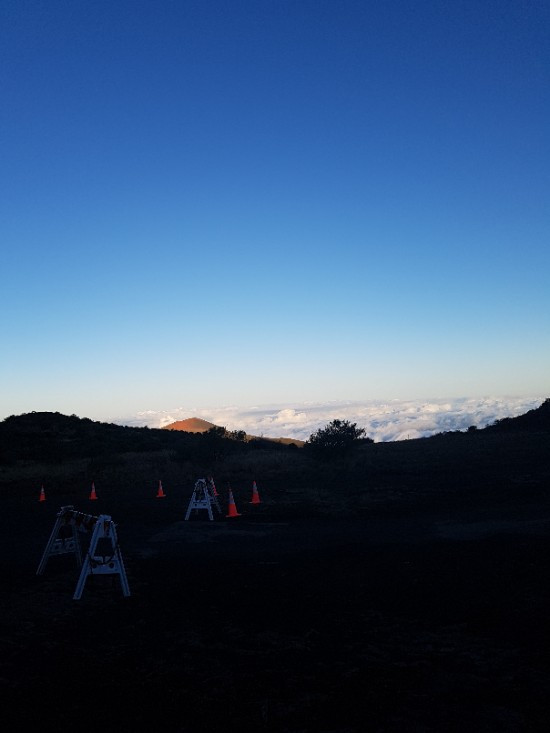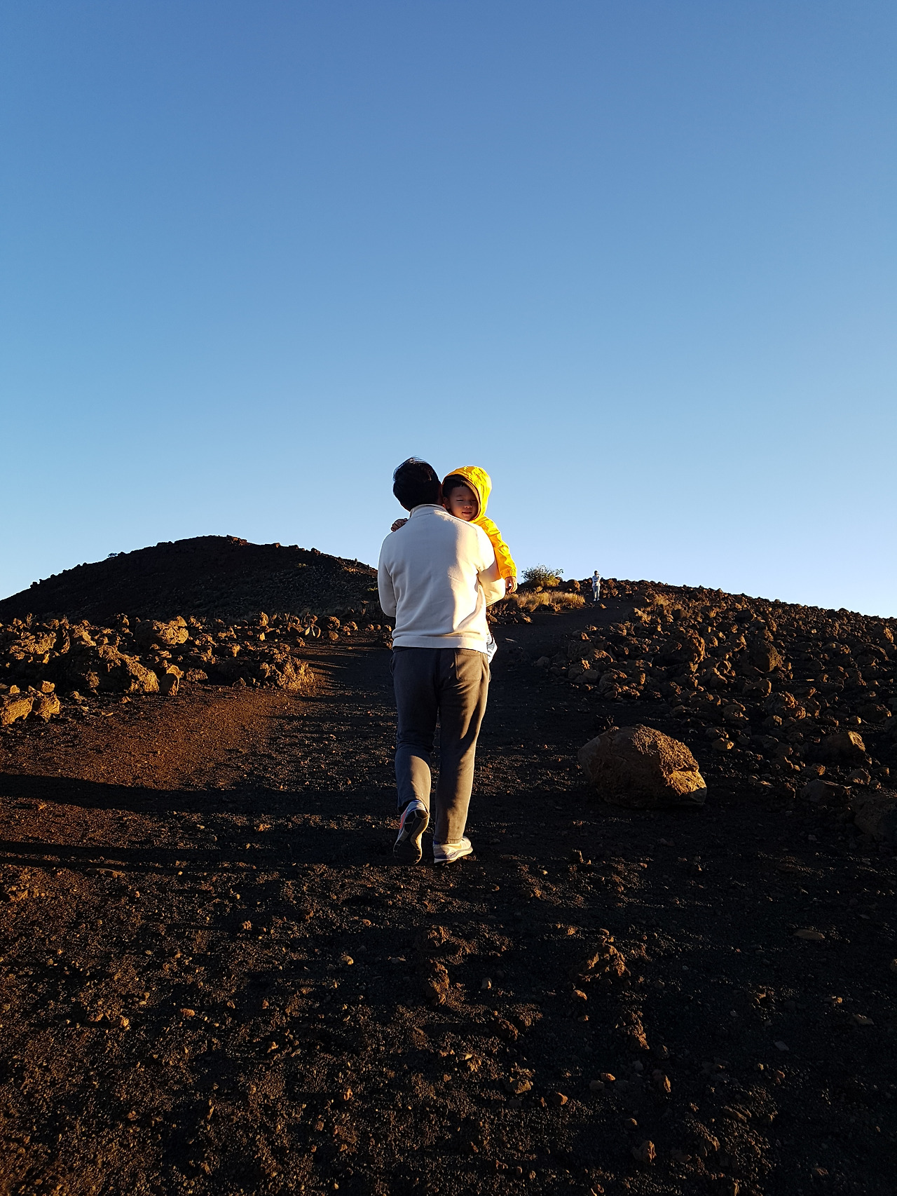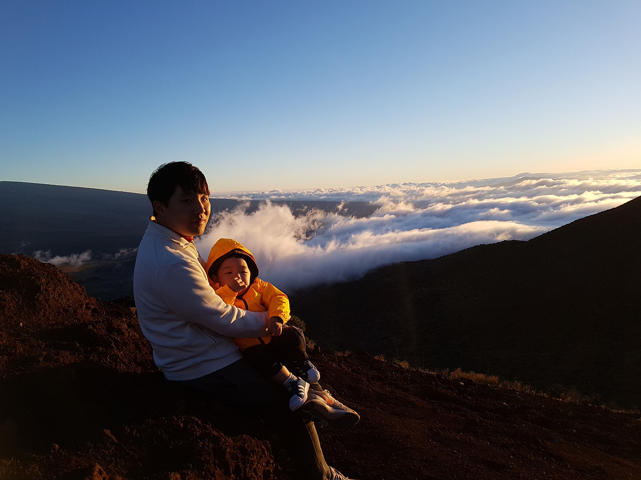 나는 3년 전 마우이 할레아칼라 일출 보러 가기 전날 밤 11시에 우연히 홈페이지에서 할레아칼라 정상이 폐쇄되었다는 글을 발견해서 못 갔던 기억이 났다. 사실 길 자체를 막은 건 아니라 별은 비지터센터 밖에서 봐도 되었지만 애기랑 있으니 밖에서 보면 춥지 않을지, 응급상황엔 누가 봐주는지, 안전요원은 있는 건지 하는 걱정이 줄줄이 소시지처럼 딸려올 수밖에 없었다. 아 이번에도 이러네. 나는 하와이에선 뜨는 해나 지는 해나 볼 인연이 아닌가 보다. 그렇게 꽤 오래 둘이 앉아 멍 때리고 있었는데 (난 사실 다른데 어디갈지 생각하고 있었는데) 갑자기 남편이 그래도 그냥 센터 밖에서라도 보자고 파이팅을 외치며 옷을 주섬주섬 입는 것이 아닌가. 머리에선 도대체 무슨 소리를 하는 거야 싫어 안 갈 거야! 했지만 덩달아 얼떨결에 준비하여 자는 애기를 안고 급히 호텔을 나섰다.