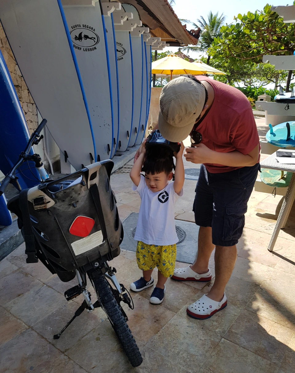 우리가 머물던 누사두아 하얏트 리조트에 문의해보니 다행히 유아를 뒤에 태울 수 있는 자전거가 비치되어있었다. 역시 방법이 있었군. 처음부터 포기할 필요가 없었어. 겨우 자전거일 뿐이었지만 정말 오랜만에, 순수히 내가 주인공인 일을 꺼내들었다는 생각에 달뜬 마음으로 잠이 들었다. 이렇게 갑자기 발리에서의 자전거 타기가 추진되었다.