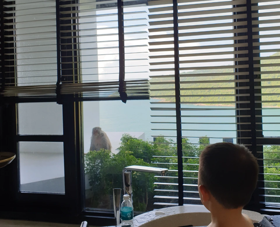 우리 하마가 바나나를 주자며 황급히 가방을 뒤졌다. 몰랐는데, 우리가 하얏트에서 체크아웃하고 있을 때 하마는 원숭이에게 주려고 컨시어지에 있던 바나나 2개를 챙겨 가방에 넣어놨던 것이다. "안돼. 아까 호텔 삼촌이 먹을 거 주거나 테라스 열면 안된다고 했잖아." 웃으며 말해주었다. 짐을 정리하는 동안 원숭이는 5분이 넘게 테라스 창을 사이에 두고 그 앞을 알짱거리고 있었다. 알짱거리는 것뿐만 아니라 너무 불쌍한 표정으로 우리를 바라보았다 (원숭이 실제 기분은 어땠는지 알 수 없다. 우리의 착각일 수도 있다). 우리 하마는 어쩔 줄 몰라하며 바나나를 주자고 재차 이야기했다. 나는 아까와 같이 설명해주었다. 사실 나는 5분 이상 원숭이 여러 마리를 보다 보니 흥미가 떨어져 감흥이 없어진 상태였다. 그런데, 갑자기 "으앙!!!!!!!!!!!!" 우리 하마가 목놓아 기 시작했다.