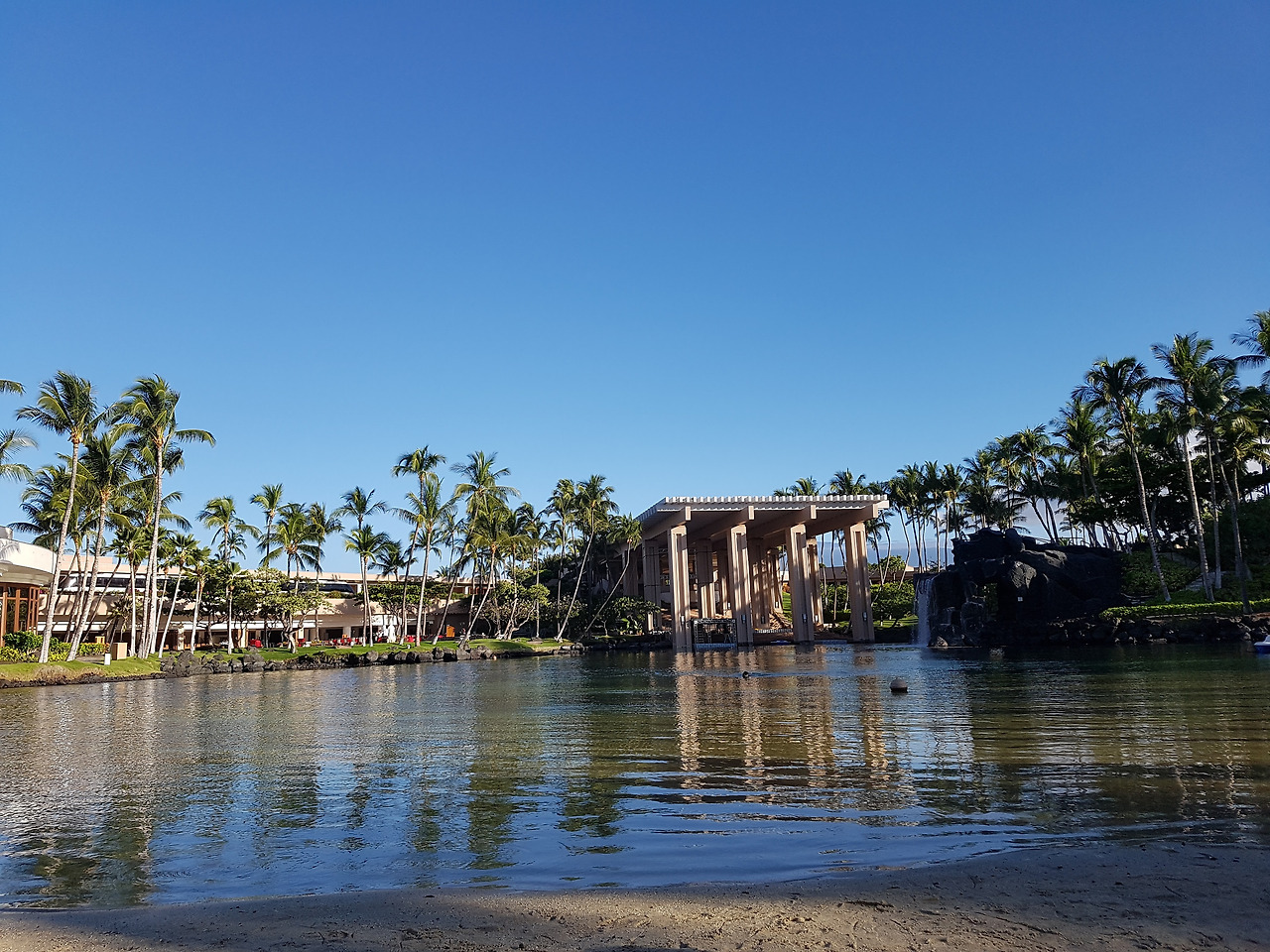 빅아일랜드 힐튼 와이콜로아 빌리지의 메인 라군, 바다와 연걸되어있어 실제 물고기와 바다거북이가 산다