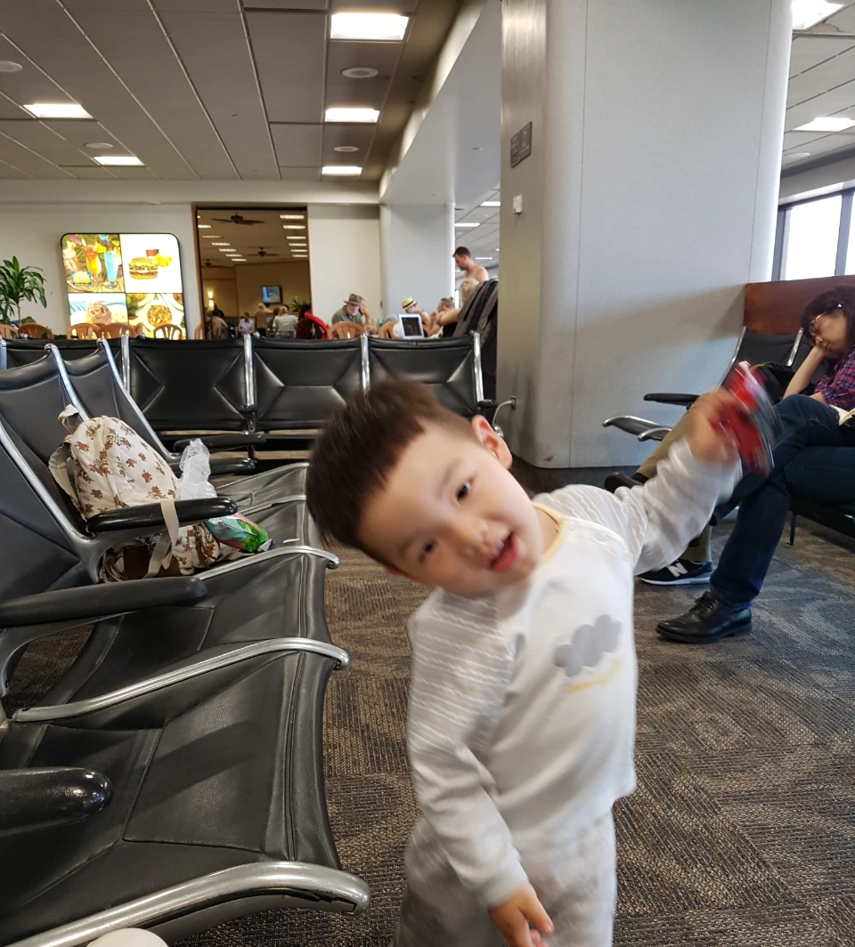 우리의 여행은 빅아일랜드에서 5일, 오아후에서 5일을 보내는 10일간의 일정. 그리고 출발편 항공 일정은 성인으로서도 다소 부담이 되는, 일본까지 2시간을 타고 가서, 일본에서 2시간 기다렸다가 다시 6시간을 날아 호놀룰루에 도착한 다음 또 2시간을 기다려 하와이언 항공을 1시간 타고 빅아일랜드에 도착하는 긴 여정이었다. 이동 시간까지 모두 고려해보면 집에서 빅아일랜드의 리조트까지 대략 20시간이 예상되었다. 그렇게 호기롭게 하와이쯤은 문제없다고, 직항표가 없어 경유 티켓을 예매하면서도 잠시 쉬어가는 게 더 좋을 수도 있다고 한껏 합리화하며 여행을 계획해 놓고는, 막상 출발일이 되자 길다면 긴 10일 동안 일어날 만한 온갖 변수가 걱정되어 심신이 시들어갔다. 다행히 우리의 두통과 상관없이 우리 하마는 무엇이 그리 신나는지 쉬지 않고 노래를 부르며 인천 공항과 호놀룰루 공항을, 그리고 빅아일랜드 코나 공항을 여기저기 누비며 뛰어다녔다.