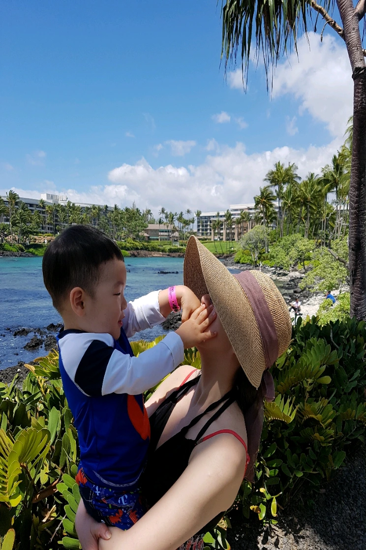 아이와 여행은 즐겁다. 하지만 당연하게도 아니면 실망스럽게도 우리가 일상에서 느끼는 육아의 어려움들 - 어디로 튈지 모르는 아이, 시시때때로 변하는 아이의 심리상태, 아이를 먹이고 재우는 일, 영원히 불가능해 보이는 나 혼자만의 시간- 이 계속되었다. 아이는 여행이라고 왠지 평소보다 더 흥분해있는 반면 우리는 안전 여행이라는 사 여행지에 왔으니 새로운 것을 경험해야한다는 강박을 등에 엎고 쪼그라들어 있다. 라군 풍경이 너무 멋져서 그곳에서 오랜 시간을 보내고 싶었는데 아이는 제일 작은 풀장의 모래만 1시간째 퍼 날랐다. 우리 집 앞에도 널린 모래인데! 빨리 라군을 보러 가야 하는데! 애닳은 우리와 상관없이 전혀 말을 듣지 않았다. 여행의 정의가 "익숙한 것에서 떠남"이라면 아이와의 여행은 너무 익숙한 기분이라 "대체 나는 여기에 무엇을 하러 온 것인가" 혼미 때도 있었다. 마 나는 하와이가 마법을 부려 육아가 전혀 힘들지 않은 이상향의 상태가 되기를 바랐나 보다. 그럴 리가 없는데도. 나는 한국에서의 육아가 그대로 하와이에 붙여 넣어지는 광경에 꽤나 실망했고 다소 허망했다.