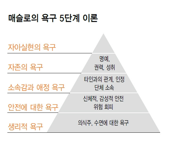 인간의 욕구는 크게 5가지로 나뉘는데, 대표적으로 영국의 심리학자 아이브러헴 매슬로우의