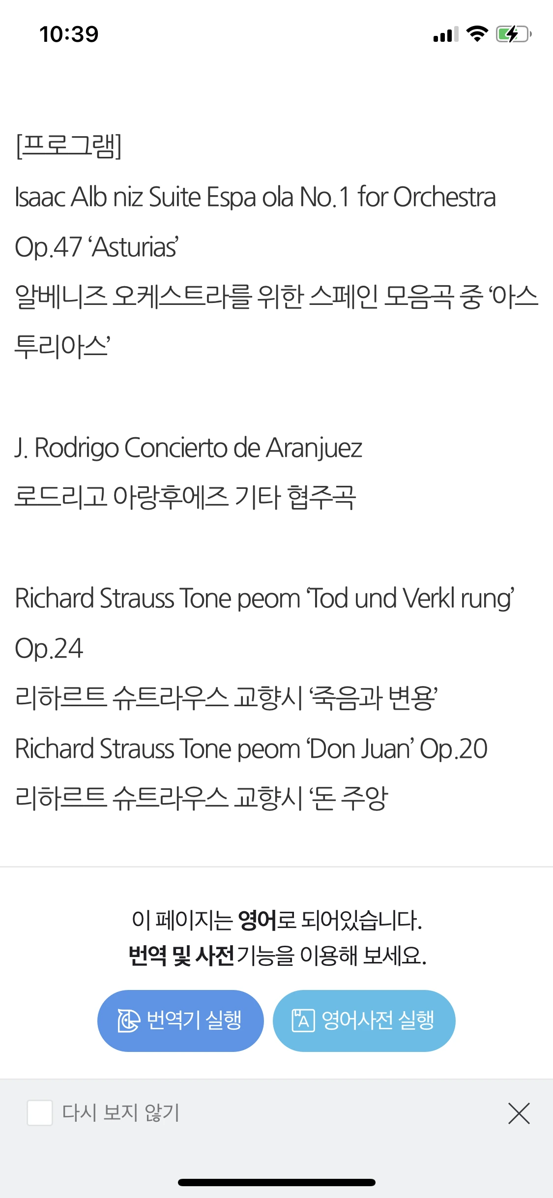 그를 위해 내가 선물을 준비했다. 클래식 음악클럽인 뮤직 파라디소의 귀띔을 통해 6월 17일 창원시립예술단을 무료 공연을 예매했다. 예매한 사진을 보내주니 아주 흡족해한다. 사전에 곡에 대해 들어야 하다면 사하르트 슈투라우스 <죽음과 변용>을, 로드리고의 아랑헤즈 협주곡 제3장 까지를 들려주며 설명해준다.