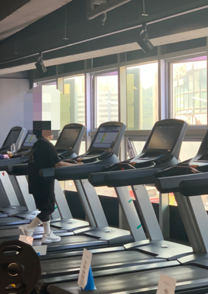 기분이 좋아 몸을 슬금슬금 풀고 있는데 내 옆 러닝머신에서 또 허리 굽어진 할머니가 걷고 계신다.