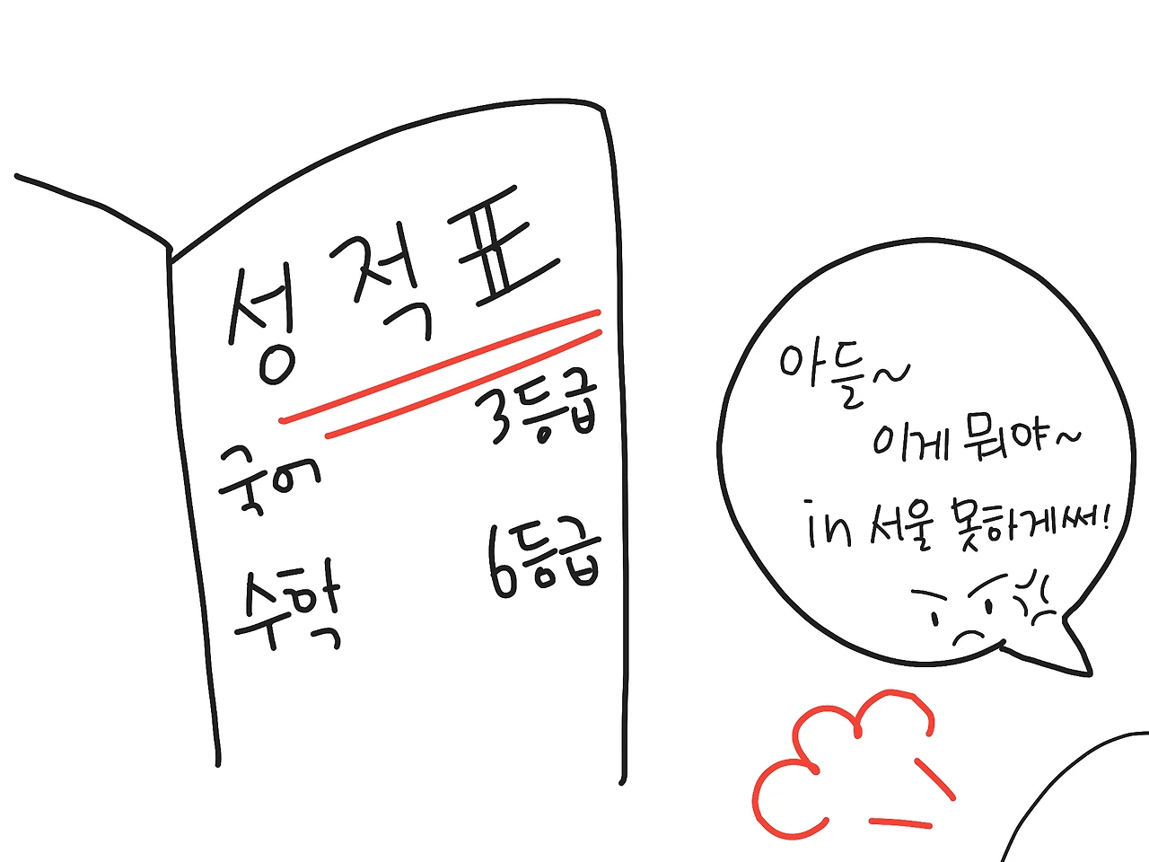 과도한 내 스킨십에 아들이 자동적으로 멀리 도망가 버린다. 성적표를 다시 보며 이래 갖고 인 서울은 안 되겠는데....