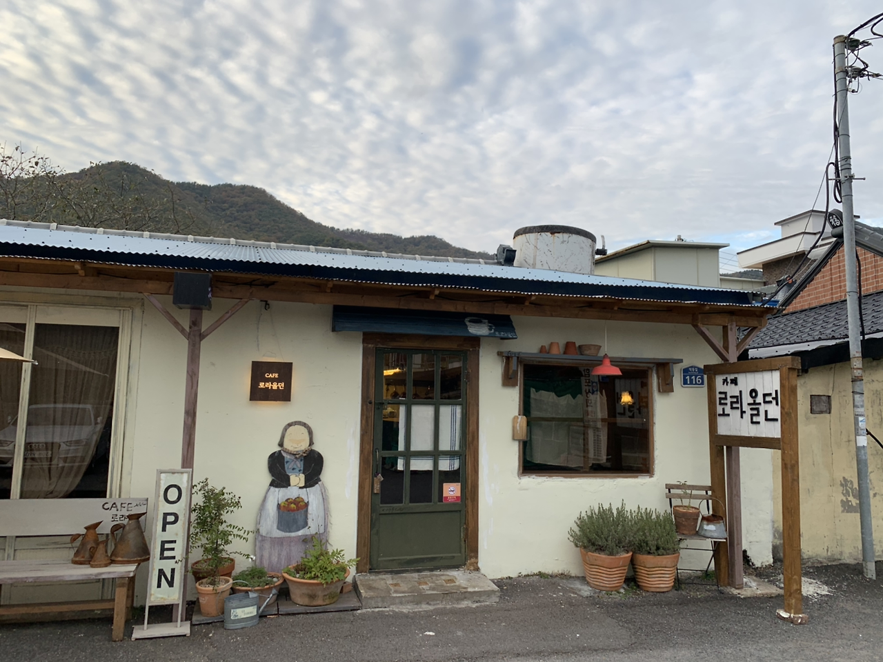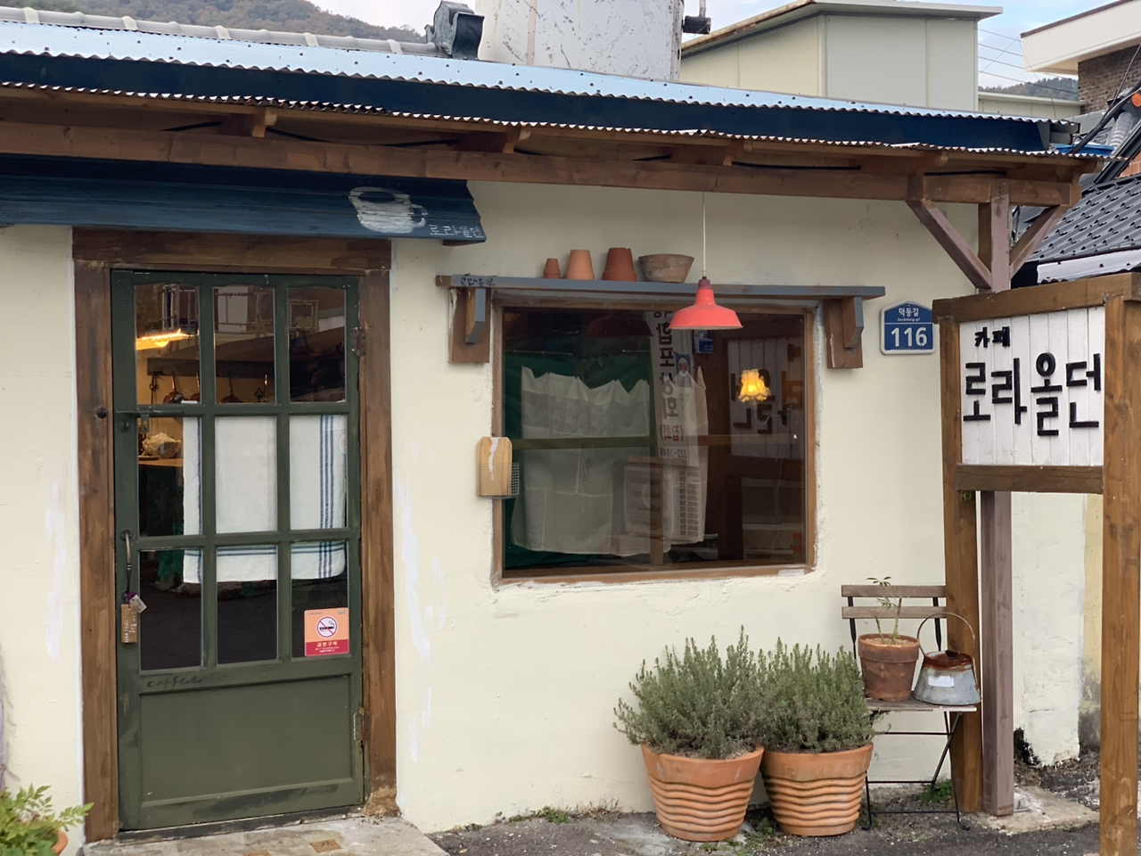가던 길로 가지 않고 덕동 동네를 한바뀌 돌아서니 못 보던 카페가 눈에 뜨인다. 로라올던 언제 생겼지? 전혀 카페가 있을 자리가 아닌 동네 한가운데에 운치 있는 카페가 턱 하니 나타났다. 저기 카페 예쁜데 사진 좀 찍고 올게. 후다닥 내려 외관만 찍다가 내친김에 안에 들어가 본다. 주인에게 양해를 구하니 사진 촬영을 허락해 주신다.