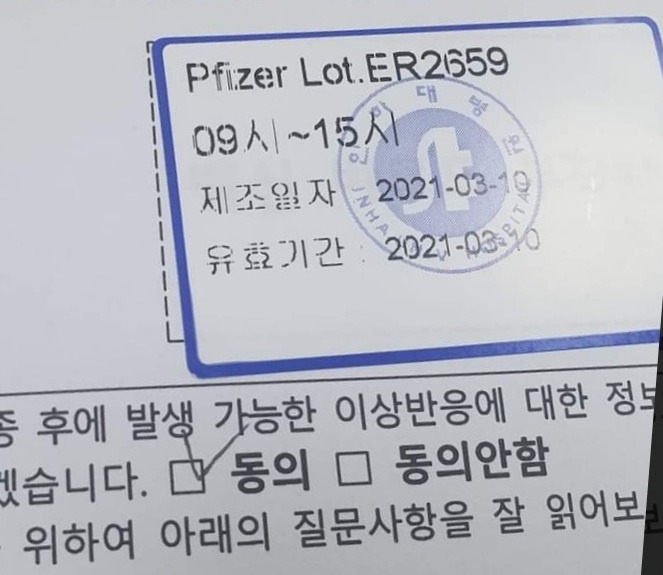 <우측: 지인이 맞은 화이자, 좌측: 내가 맞은 아제>