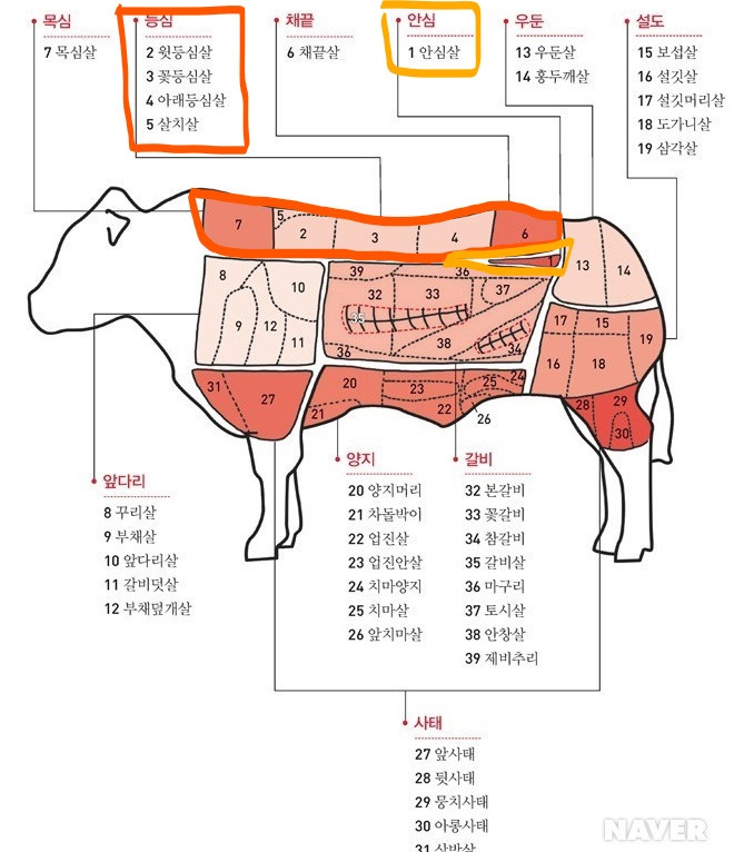 소고기 하면 스테이크고 스테이크 하면, 등심과 안심이다.