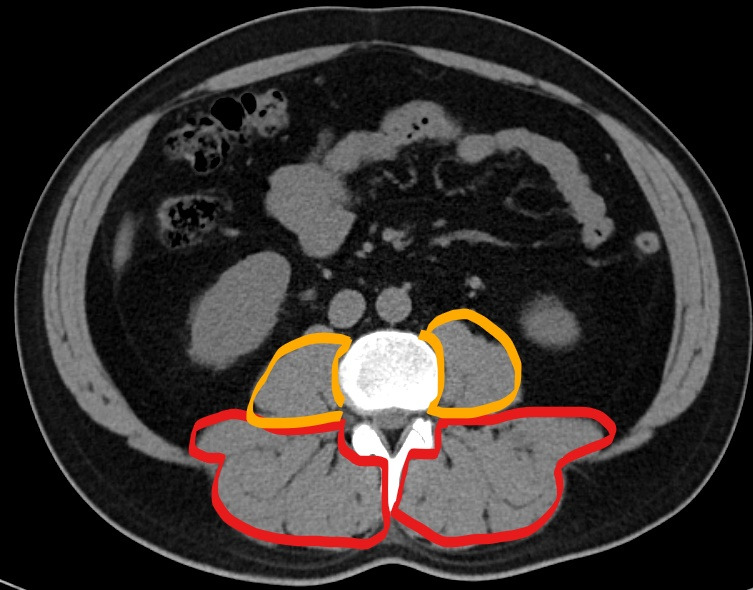 CT상에서 보면, 이 안심은 복벽 안에 있는 요근(psoas muscle)이다. 이 근육이 수축 시, 허리가 ㄱ 자로 굽어진다. 등심(ecector spinae muscle, 척추 기립근)이 수축하면 허리가 펴지고, 안심(psoas muscle, 요근)이 수축하며 허리가 굽어진다. 등심이 동전의 앞면이라면, 안심은 동전의 뒷면이다.