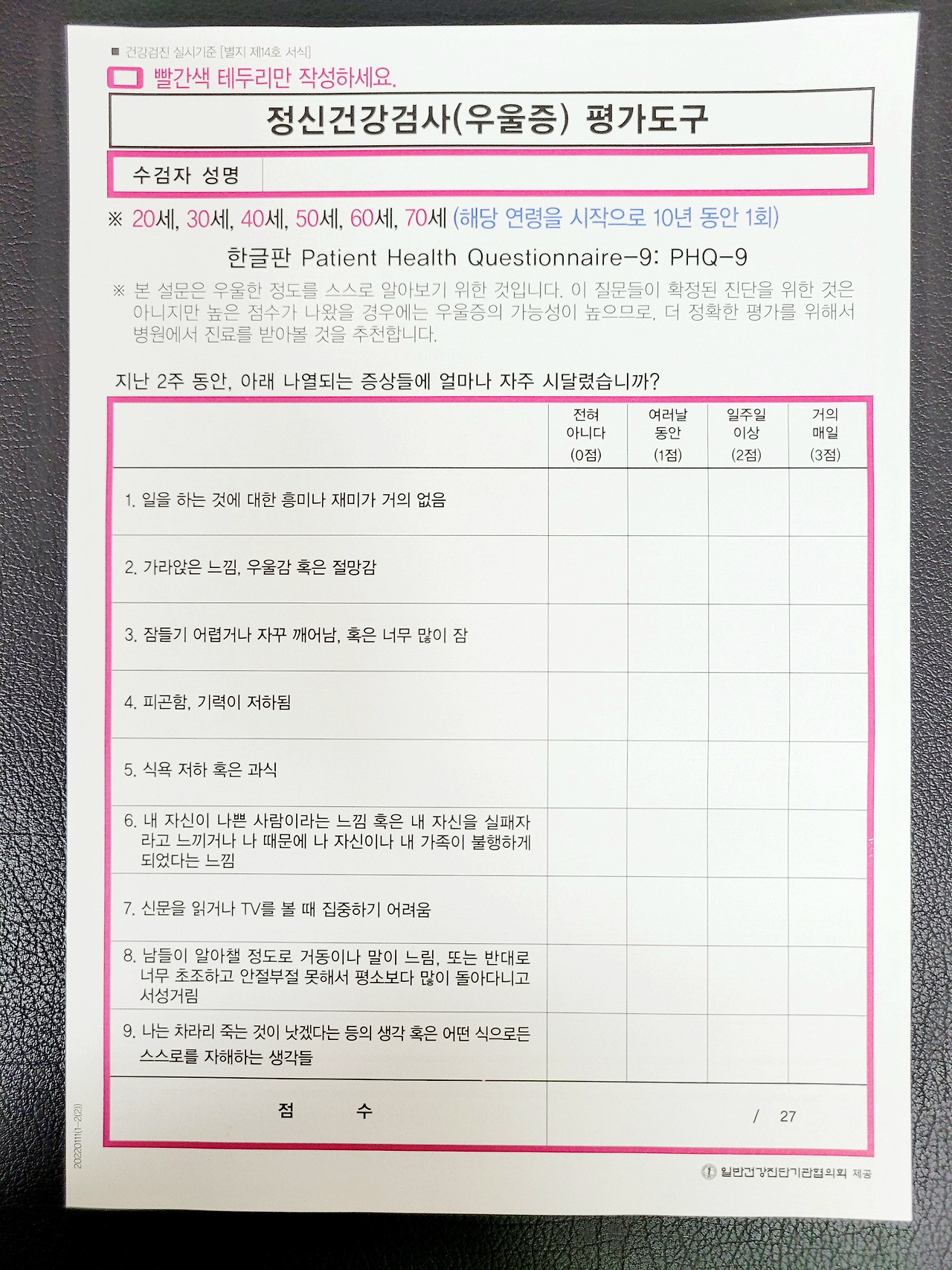 만 20세에 첫 건강검진에 포함된 우울증 검사에서 수치가 높게 나왔다.
