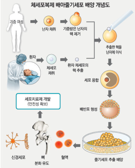굳이 B라는 수십조 개의 세포로 구성된 사람까지 만들지 않고, 하나의 세포를 50~150개의 세포까지만 복제해도 된다. 이 50~150개의 세포를 ‘배아줄기세포’라고 하는데, 이 세포는 그 어떤 세포로 될 수 있다. 황우석이 만들었다고 하는 것이 바로 이 ‘인간배아줄기세포’였기에 그는 많은 불치병 환자들의 희망이 되었다.