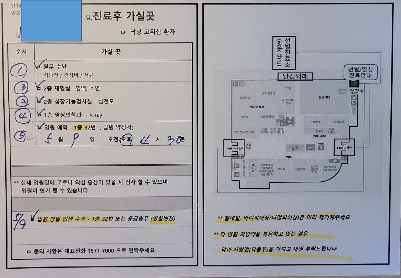 일단 대학병원 치고는 비교적 작은 규모인 데다, 전공의 사직 등으로 환자가 적었고, 마칠 시간에 다 되어서 온 데다, 그나마 병원 시스템을 잘 알고 있는 데다 발에 땀이 나도록 뛰었기 때문이다. 조금이라도 늦었다가는 입원 전 검사로 병원을 다시 한번 더 와야 했다.
