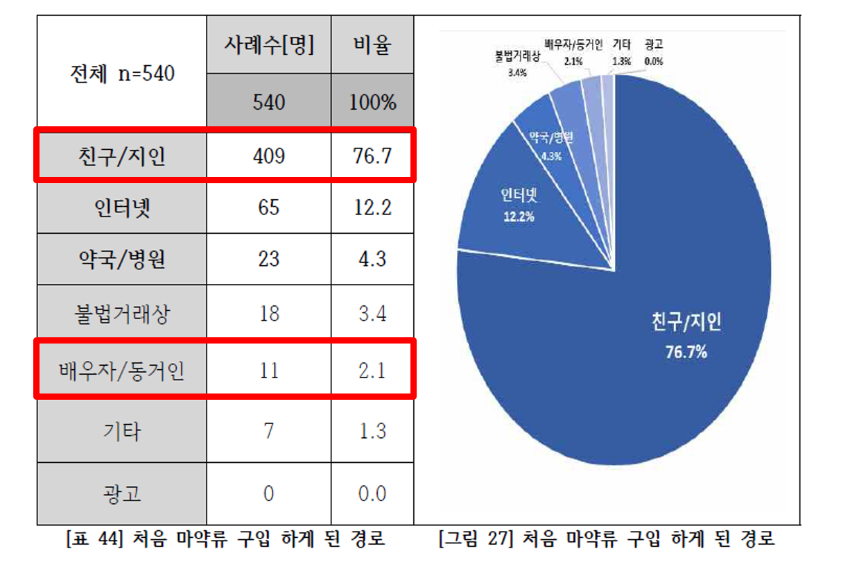 마약을 처음 권하는 사람의 대부분은 지인이나 친구이다.