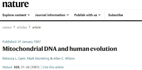 미국의 유전 인류학자 앨런 윌슨과 레베카 칸, 마크 스톤킹은 세계 각지 다양한 인종을 대표하는 산모 147명으로부터 태반을 기증받아 체세포 미토콘드리아에 있는 유전자 연구를 통해, 현재 인류가 모두 같은 조상에서 유래되었다고 결론을 내렸다. 그 조상은 20만 년 전 동아프리카 사바나 지역 출신이었다. 과학자들은 그녀를 미토콘드리아 이브(mitochondria Eve, mt Eve)라고 불렀다.