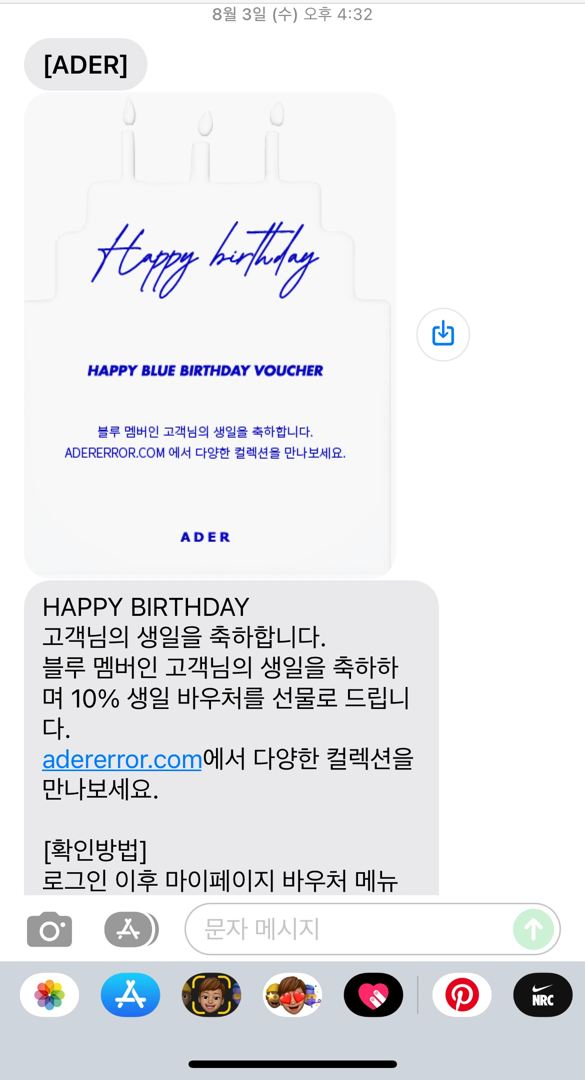 축하 시점 : 해당 월 1일에 문자, 너무 일찍이라 나보다 더 신나 하는 기분! 귀엽기도 했다.