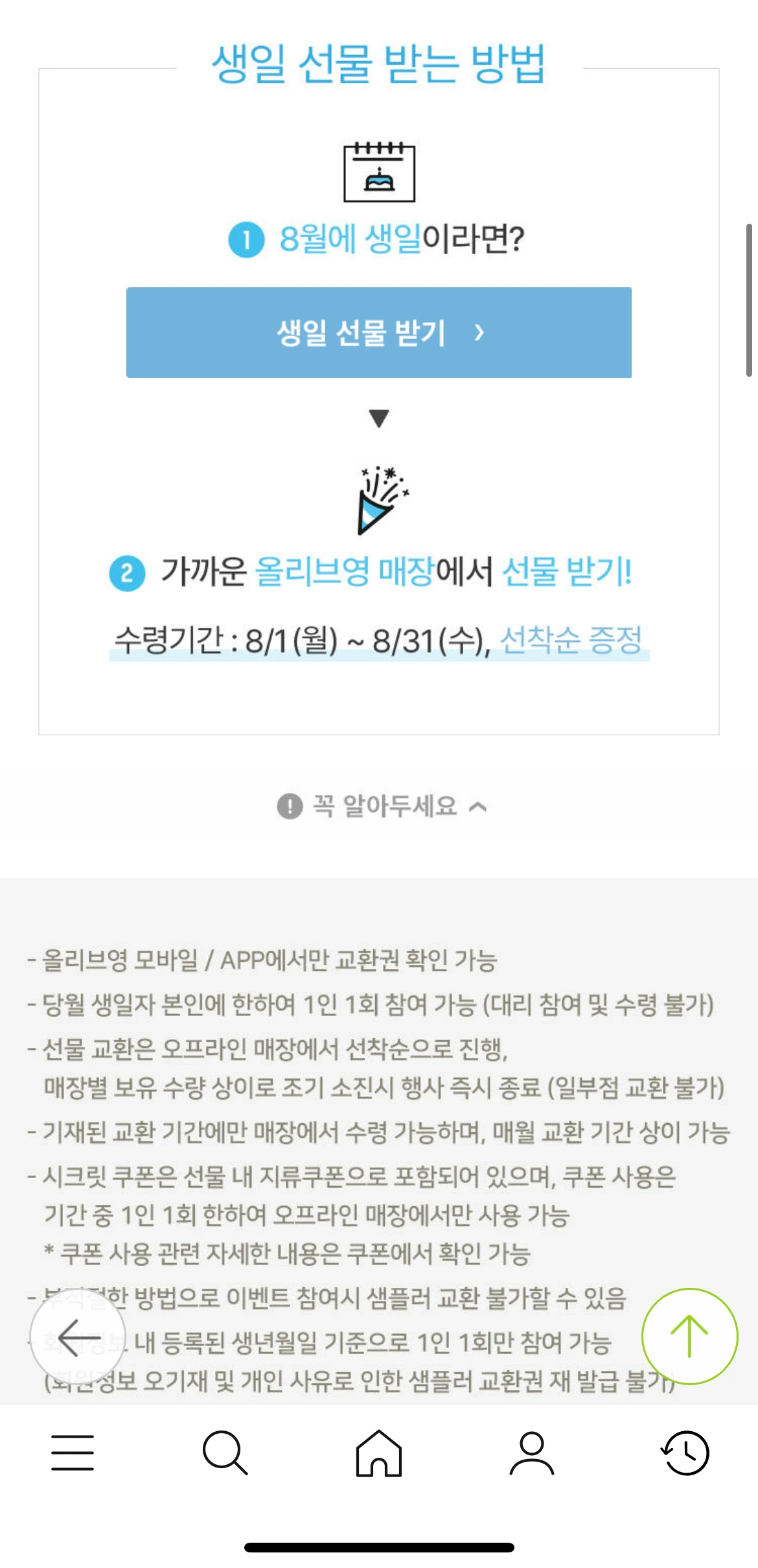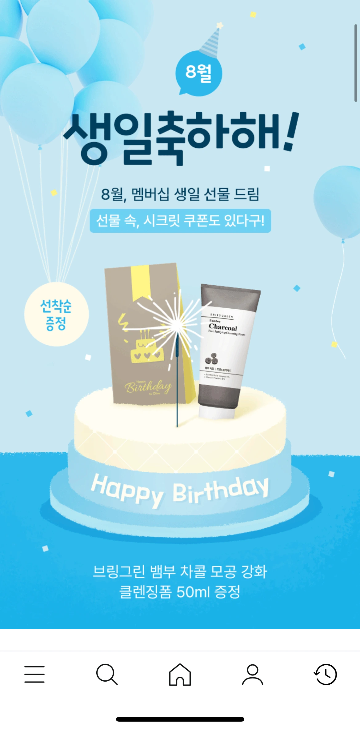 축하 방식 : 매장에 방문해서 직접 수령, 매달 선물이 바뀐다. 8월은 클렌징폼!