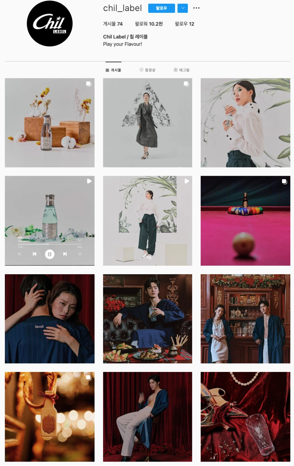 디렉터, 스타일리스트, 모델 등 이름과 인스타 아이디를 태그한다는 점에서 진짜 가수가 음원을 릴리즈한 게시글 같은 느낌을 선사해요. 인디 가수의 톤을 해치지 않으면서도 사진과 영상 내에 은근히 녹여져 있는 롯데 칠성의 음료들을 찾아 보게 되는 게 포인트! 디테일에 주목하게 되는 계정이에요!