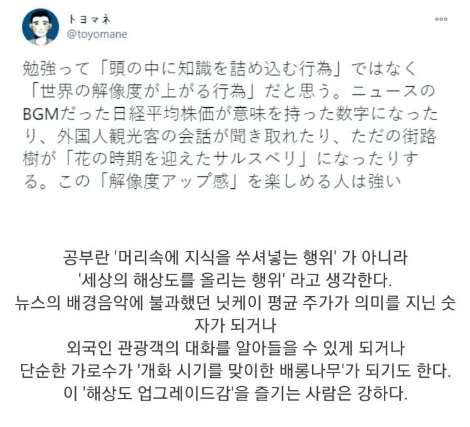 인터넷에 돌아다니는 글 중 공부와 해상도에 관한 글을 본 적이 있다. 그리고 이 글은 언제나 내 머릿속에 머물고 있다.