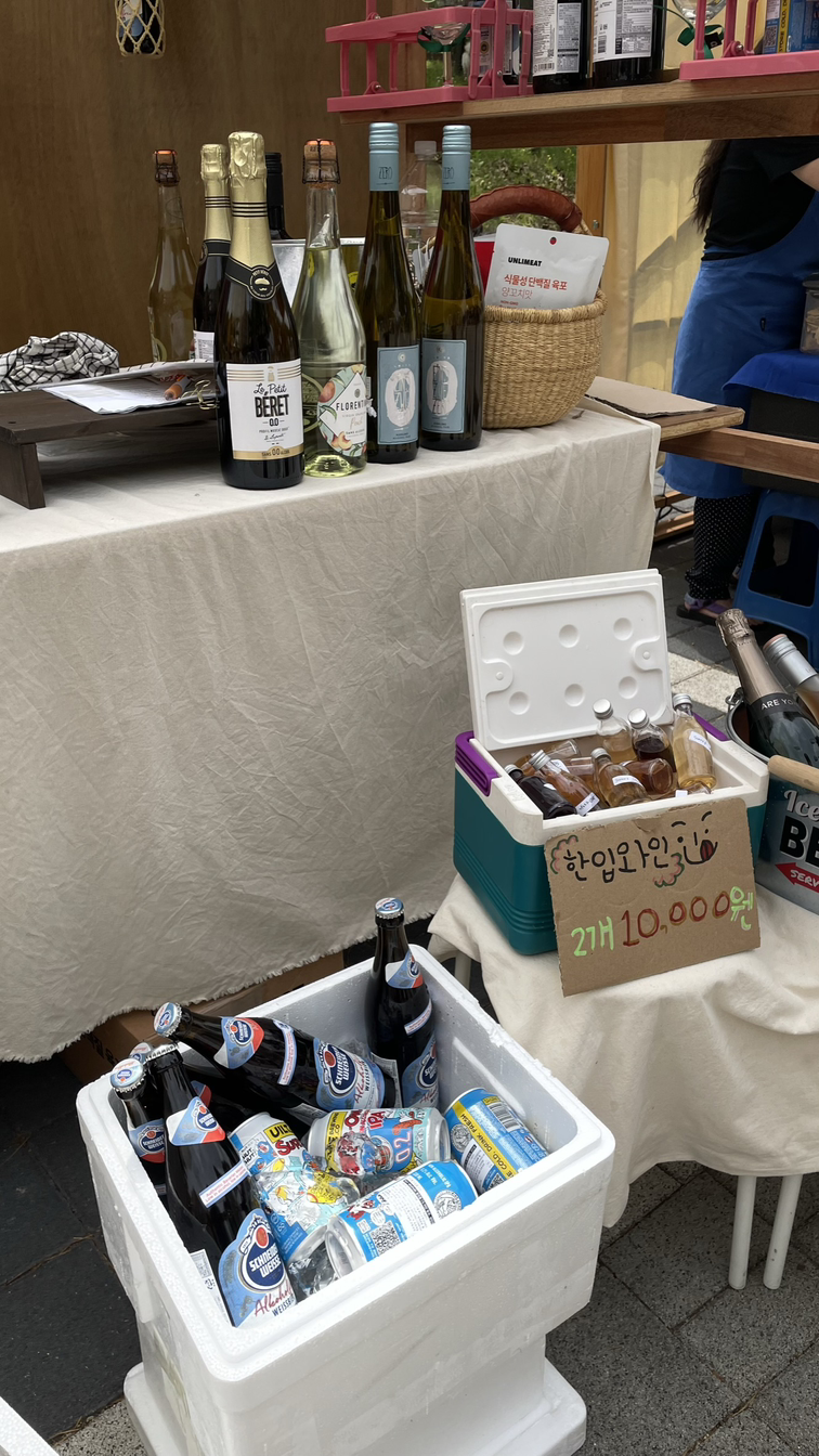 혁신파크 내부는 음주가 금지되어있는 공원이어서, 음료는 무알콜 주류가 대부분이었는데요. 판매하고 있는 2종의 맥주를 하나씩 샀어요. 하나는 밀맥주, 하나는 IPA였는데 정말 놀라운 맛이었다....!