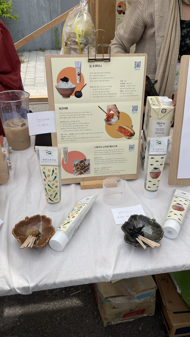 부스를 설치해놓고서는 이제 할일을 다 한(?) ㅋㅋㅋ 마음으로 편안하게 비건페스티벌을 구경했답니다. 나유타 카페에서 팔던 김 츠쿠타니가 너무 맛있었는데, 스마트스토어에서도 판다고 하셔서 돌아왔어요. 근데 온라인 판매 안된다고 해야.... 막 충동구매 할 수 있을 것 같아요. (아직 안샀거든요)