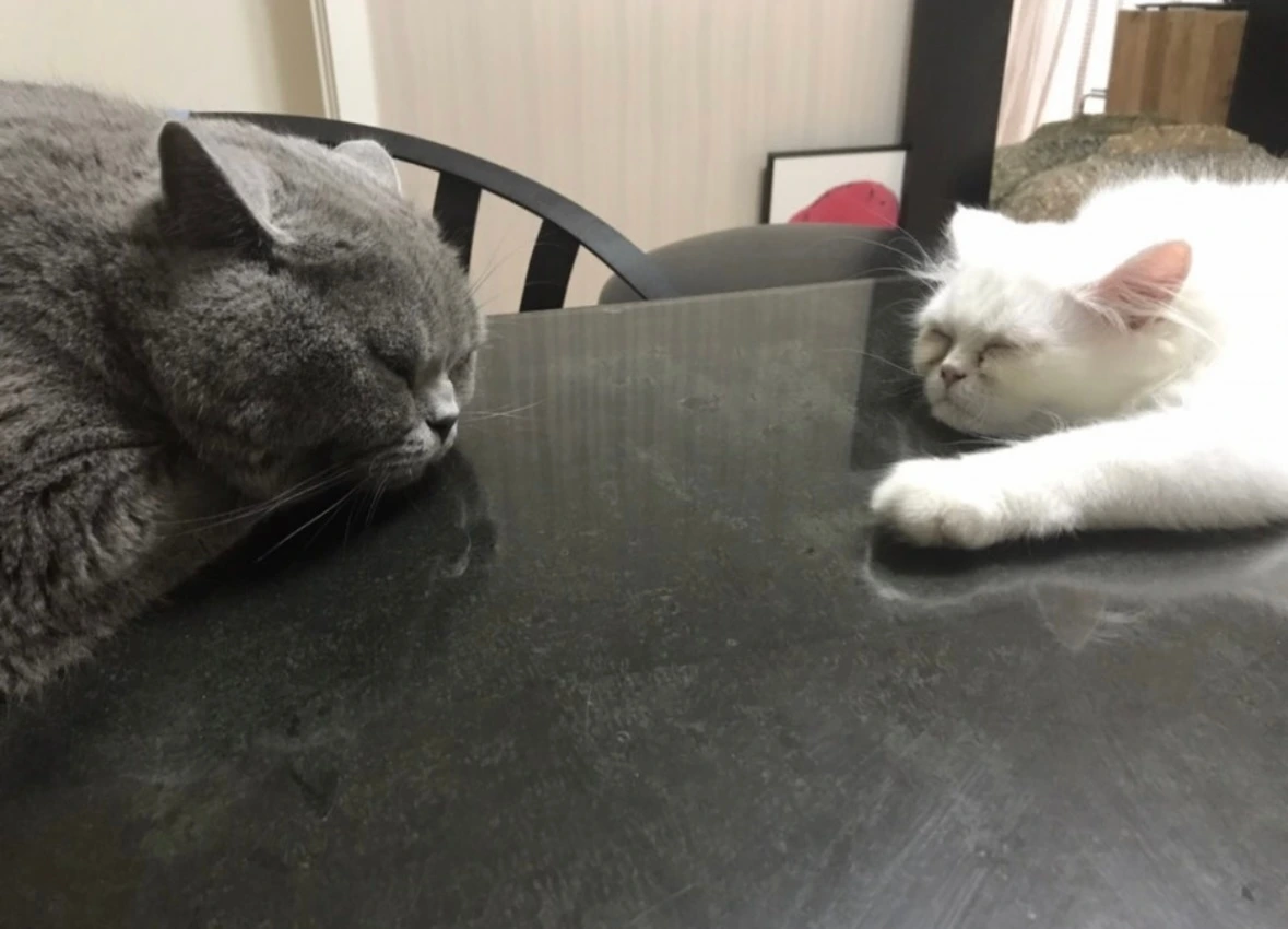 그래서 블랙 컬러 옷을 선호하던 내 취향이 점점 더 밝은 컬러를 선호하게 됐고 옷 소재도 털이 덜 붙는 소재를 선호하게 됐다. 뚱냥형제의 회색과 흰색털이 어두운 색보다는 밝은 색 옷에서 티가 덜 나니까, 자연스럽게 내 취향도 환경에 따라 변했다.