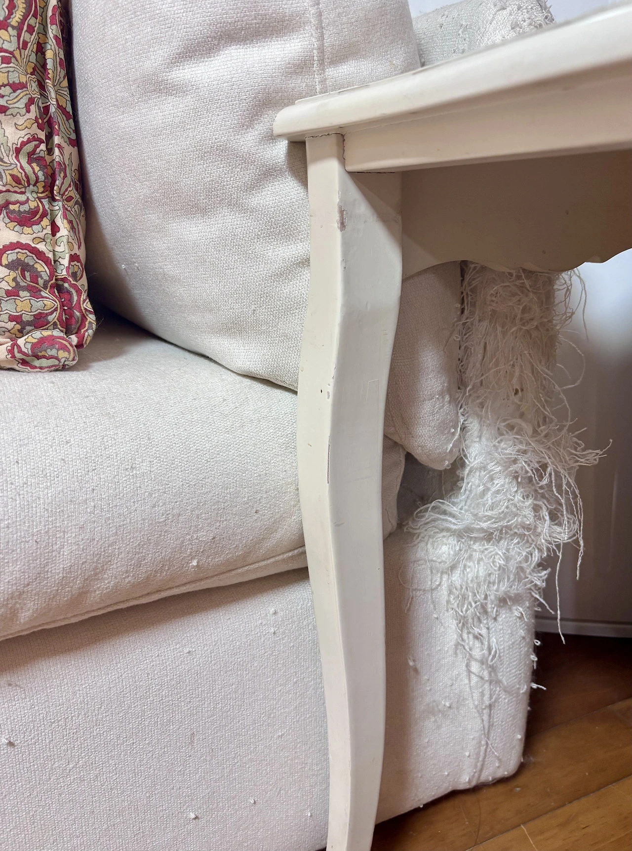 솔직히 러그는 올이 좀 뜯겨도 괜찮다. 하지만 소파가 뜯긴 부분을 보면 아찔하다. 그래서 나름 고민해서 천도 덮어보고 테이프도 붙여 봤지만 소용없었다.