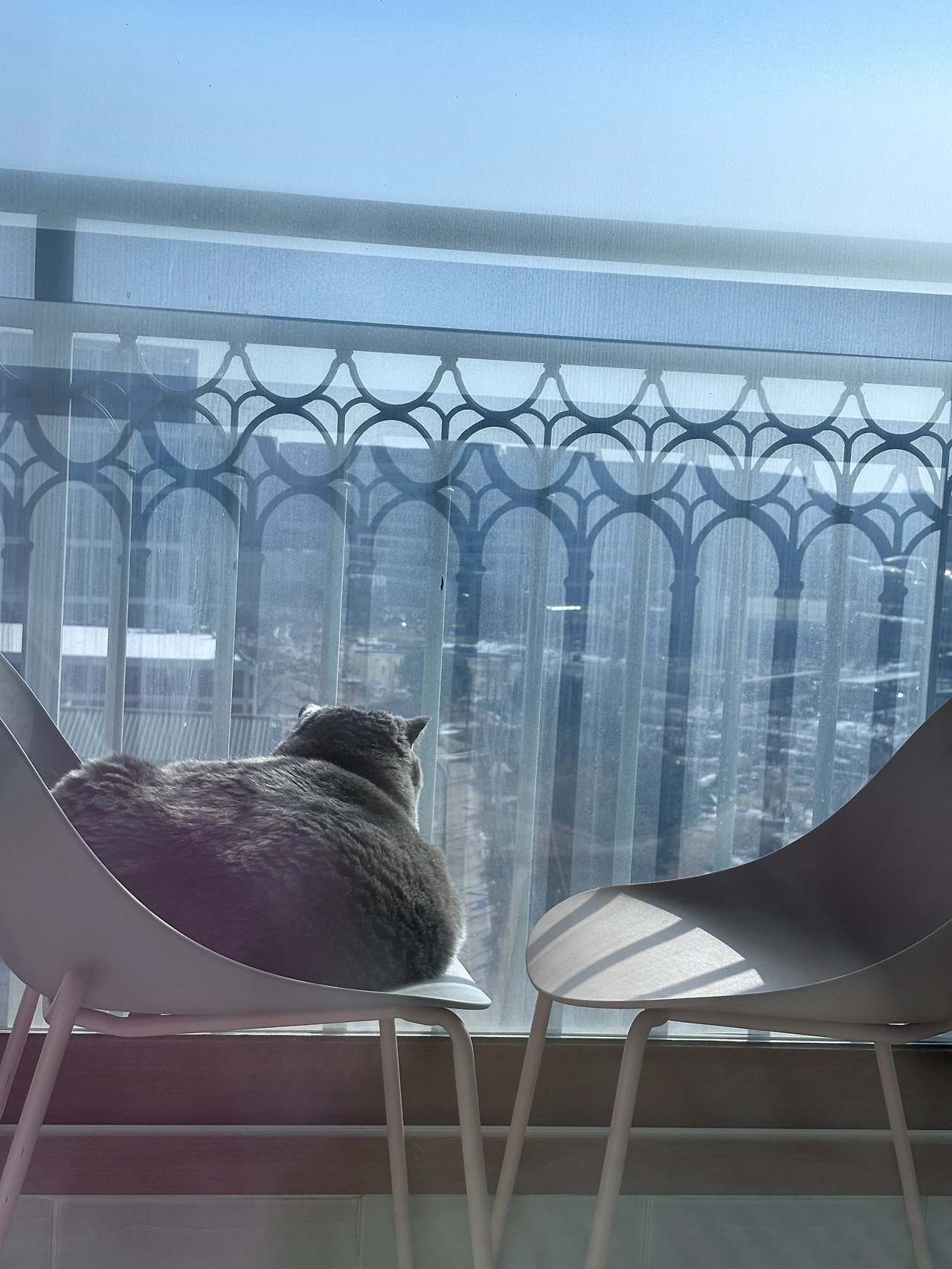 의자를 베란다 창가 앞에 내놨다.