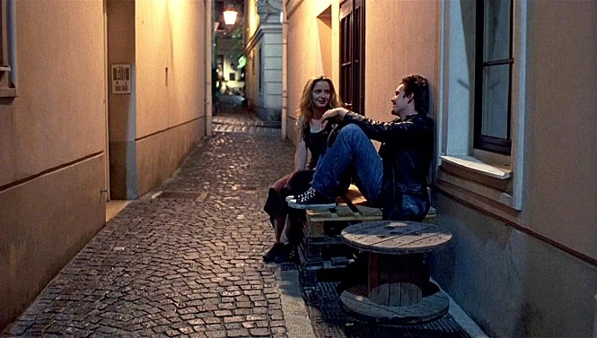 줄리 델피가 맡은 '셀린'이라는 캐릭터는 프랑스 파리에서 대학교를 다니고 있는 학생입니다. 셀린은 헝가리 부다페스트에 살고 있는 할머니를 만나고 파리로 돌아가는 기차 안에서 '제시'라는 미국인 청년을 만납니다. 이 역할을 에단 호크가 맡았어요. 우연히 만난 둘은 기차 안 식당에서 깊은 대화를 나누게 됩니다. 그런데 제시는 다음 날 오스트리아 빈에서 비행기를 타고 미국으로 가야 하는 상황이에요. 제시는 아쉬운 마음에 셀린에게 빈에서 함께 내려 마을을 둘러보며 얘기하자고 제안합니다. 셀린이 그 제안을 받아들이면서 두 사람의 데이트가 본격적으로 시작하게 됩니다.