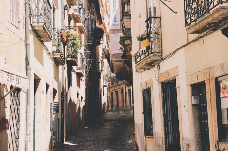 리스본 구시가지는 몇백년이된 건물들 사이에서