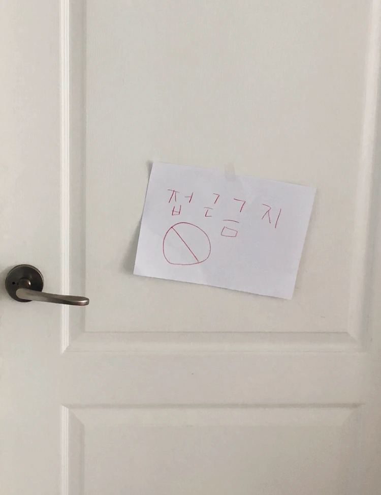 "엄마, 내가 말할 때까지 방에 들어오지마."