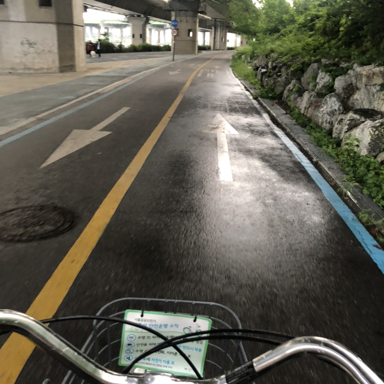 따릉이를 탄지 5분도 안돼서 비가 내리기 시작했다.