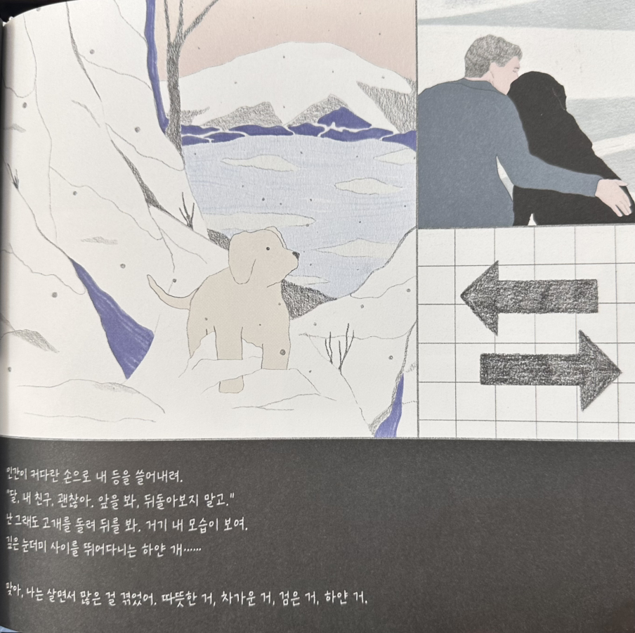 책 속, 눈 덮인 길 위에서 등을 쓸어주는 손이 이렇게 말한다. “앞을 봐. 뒤돌아보지 말고.”그 장면이 두부와 나의 마지막 같았다.
