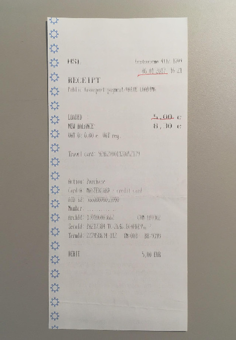 한 번은 헬싱키(Helsinki) 시내에서 알토대학교 오타니에미(Otaniemi) 캠퍼스가 있는 에스푸(Espoo)시로 가야 했다. 핀란드에 도착한 지 며칠 되지 않았던 때라서, 그때까지는 travel Card가 없었지만 버스에서 현금을 낼 수 있다기 그냥 타러 갔다. 헬싱키 중앙역 근처에 있는 Kamppi버스 터미널에서 오타니에미로 가는 102T(또는 103T) 번 버스를 탔다. 버스에서 Single ticket(1회 탑승권)을 구입했는데, 가격이 5.5유로였다. 우리 돈으로 하면 6,500원 정도 하는 셈인데, 버스 타고 30분 가려는 것뿐인데 6,500원이라니! 정말 너무 비쌌다. 그래서 장기적으로는 정기권을 구입하는 쪽이 Single ticket(싱글 티켓)을 구입하는 것보다 훨씬 이득이다. 그리고 일단 학생증(혹은 학생임을 증명할 수 있는 서류)을 받은 뒤엔, 학생 할인된 금액으로 교통권을 구입할 수 있다. 학생 요금은 일반 성인요금의 절반 정도로 저렴하다. 공항에서 헬싱키 시내까지 운행하는 핀에어 공항리무진 버스는 편도에 8.9유로 정도 했었다. 주변 나라를 여행할 때, 현지 도착한 뒤 이동하는 비용은 교통비에 넣었다. 카드 가격은 5유로, 학생요금으로 26.87유로짜리 정기권(Region)이면 1달을 쓴다. 합계 304.27유로.