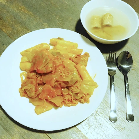 계속해서 비슷한 재료가 보이는 것 같다면, 당신은 눈썰미가 좋은 것이다! 그렇다. 혼자 식사를 만들어 먹다 보니 매 끼니에 비슷한 식재료를 사용하게 되는 건 어쩔 수 없는 것 같다. 어묵과 두부는 한 번 사면 여러 번 만들어 먹었고, 양배추는 쌈처럼 먹기도 하고 떡볶이에 넣어 먹기도 했다. 떡볶이는 아시안 마켓에서 파는 떡볶이떡과 떡볶이 소스로 간편하게 만들었다.