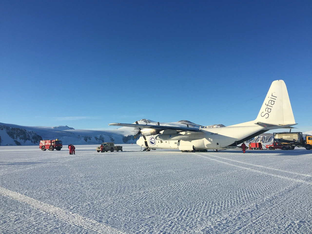 ▲ C-130 수송기 ㅣ 뉴질랜드 크라이처치에서 7시간 비행하여 남극 테라노바베이 얼음 바다에 착륙한다