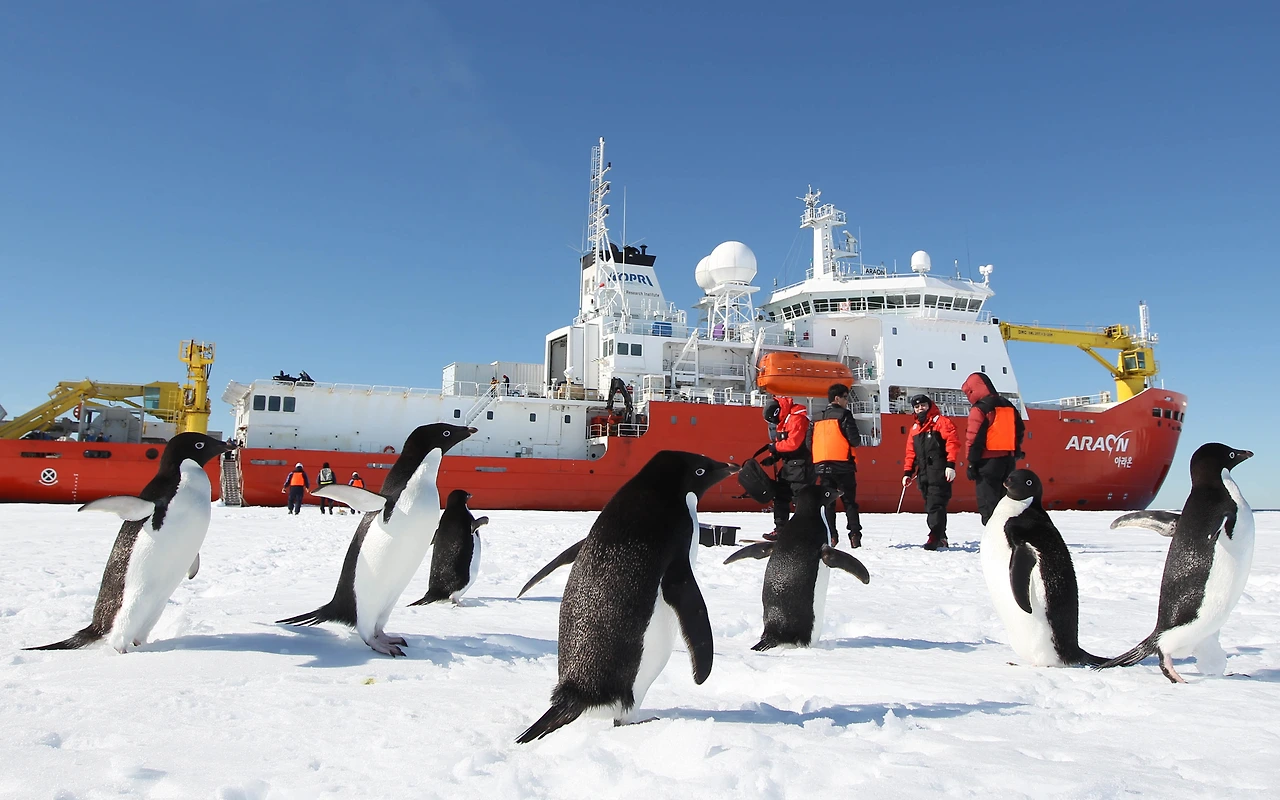 아라온호는 우리나라 최초 쇄빙연구선이다. 2009년 6월 11일 국내 기술로 진수되었다. 바다라는 ‘아라’와 전부라는 ‘온’의 의미로 전 세계 바다를 누비는 소망의 의미가 있다. 얼음을 깨며 항해한다. 1미터 두께의 얼음을 깨면서 3노트 속력으로 전진할 수 있다. 첨단장비를 탑재하여 해양 연구가 가능하다. 남, 북극 기지에 대한 보급과 수송, 탐사지원을 한다