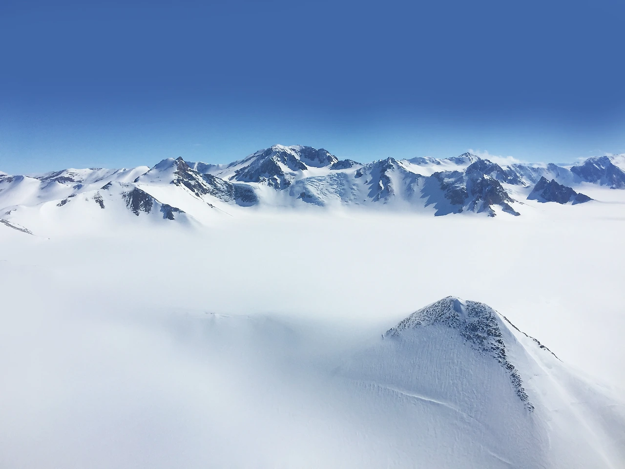 ▲ 남극 설원 ㅣ 헬기를 타고 하늘에서 바라본 남극 내륙의 모습