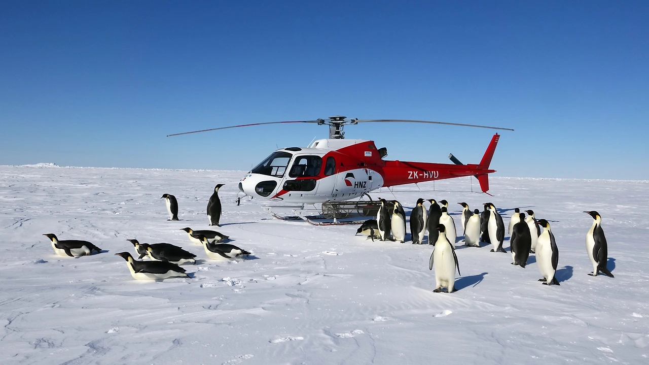헬기 주변에 모여든 펭귄들 "꼭, 살아 남아라"