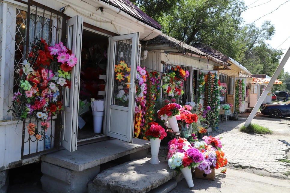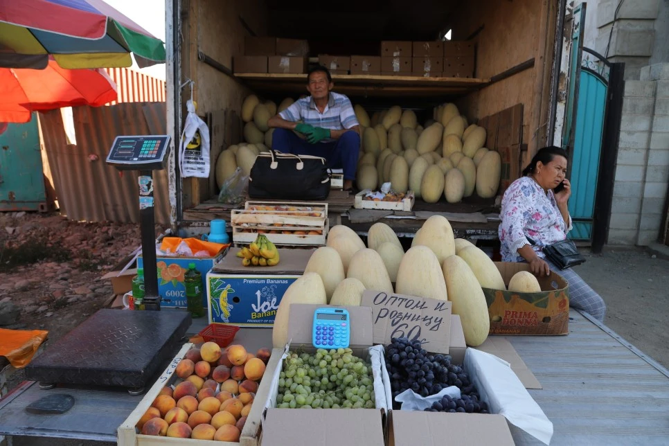 야채, 과일, 생필품을 구입할 수 있는 중심가에 위치한 시장이다. 컨테이너를 쌓아 건물을 만든 것이 인상적이다. 큰 수박, 멜론 한통에 1,000원 정도한다. 멜론은 당도도 높고 맛있는 최고의 과일이다. 외곽으로 이동하는 마슈르카 정류장도 함께 있다. 카라콜 근교의 랜드마크 제티오거즈(JETY - OGUZ)에 가려면 355번 마슈르카를 타고 다녀올 수 있다.